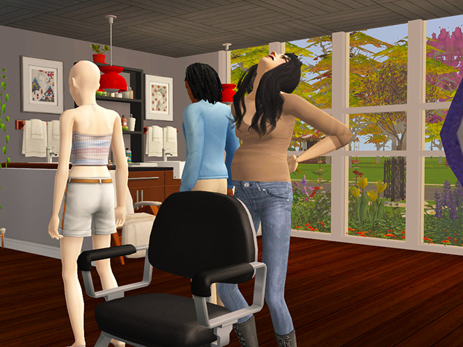 Eleni tries to convince this guy to get a makeover…but judging from the way things are going in the back corner there, she’s not likely to persuade him.