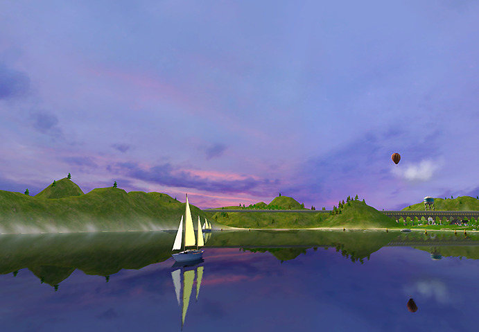 I, er, clearly devoted most of my time to building up the city center. 😛 (I can’t help it, I’m a city girl and I love urban settings!) I’m starting to branch out and work on a middle-class suburban area (top right hand corner of the first picture, visible in the second picture), as well as the waterfront property. I love the way the boardwalk looks in hood view, and you can also see Nate’s little house across the bay there. 🙂